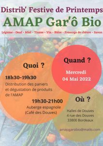 Vous êtes ici : Accueil / Validation échange / Distrib’ Festive de printemps – AMAP Gar’ô Bio / JPEG_Distrib_festive Printemps_Garobio